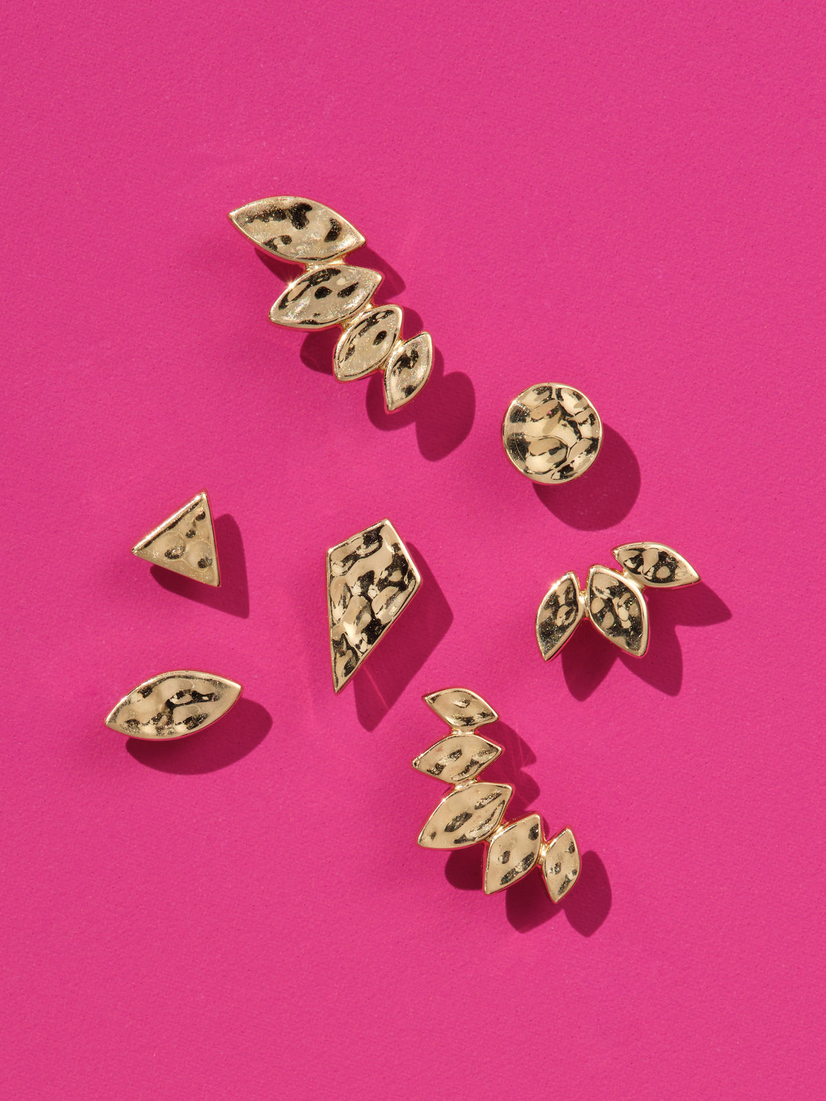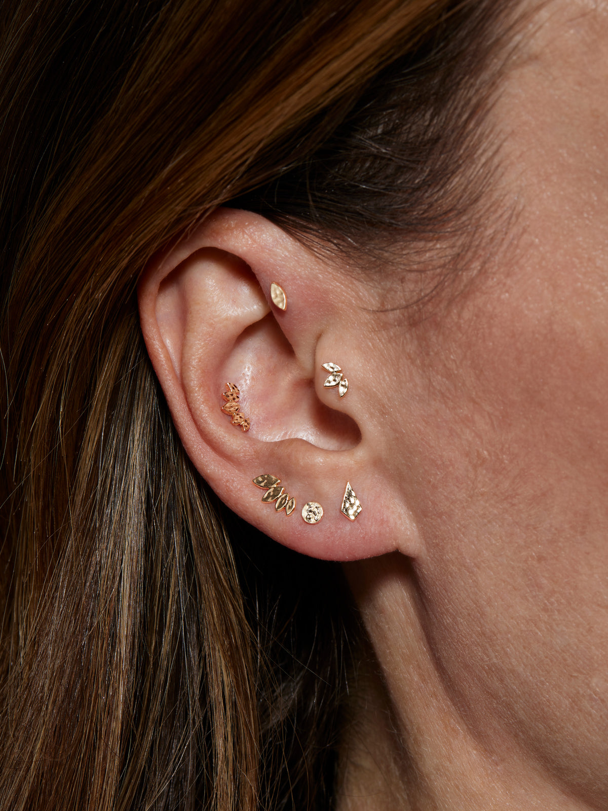 4 Graduated Hammered Marquise Yellow Gold Stud
